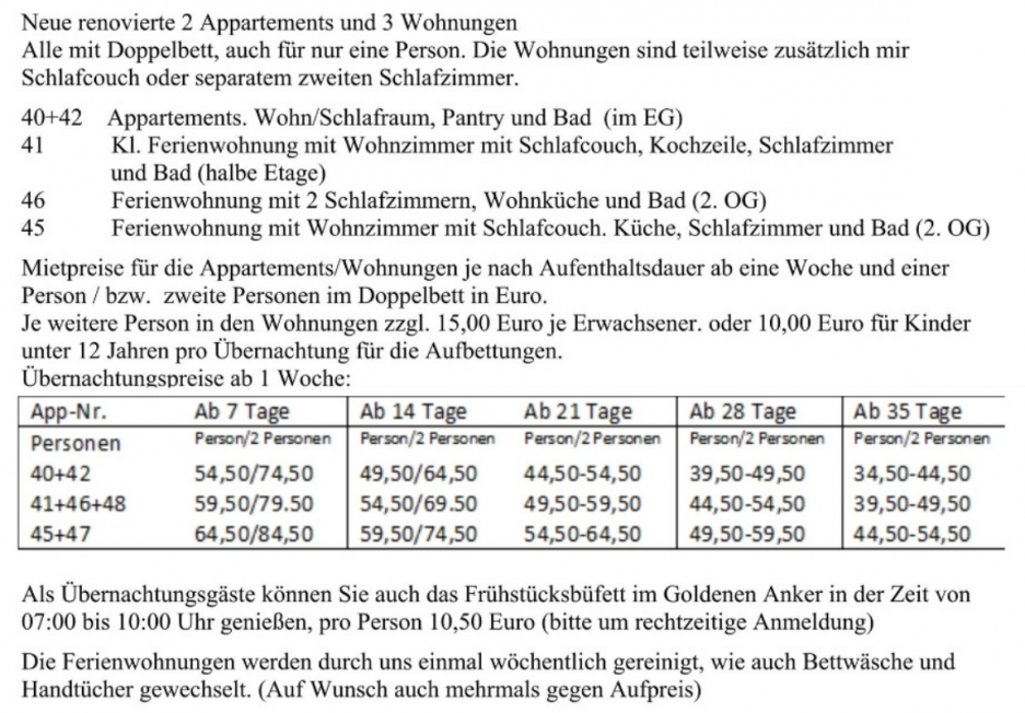 Tolle und einzigartige Ferienwohnungen im historischen, über 400 Jahre alten Fachwerkhaus, dem „Bremer Fährhaus“, Weserstr. 9, gleich neben dem Hotel Goldener Anker. Zum Goldenen Anker gehören die Ferienwohnungen mit dem Blick in die Altstadt oder auf die Weser, bzw. ins Wesertal.
