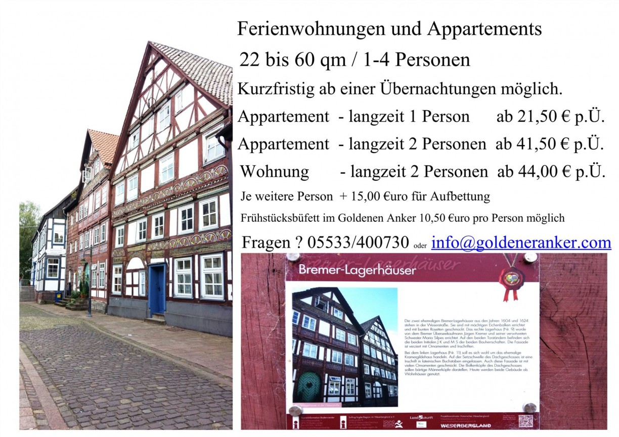 Sie sind hier: Willkommen in Bodenwerder bei Ihrer Ferienwohnung an der Weser » Appartements und Wohnen auf Zeit